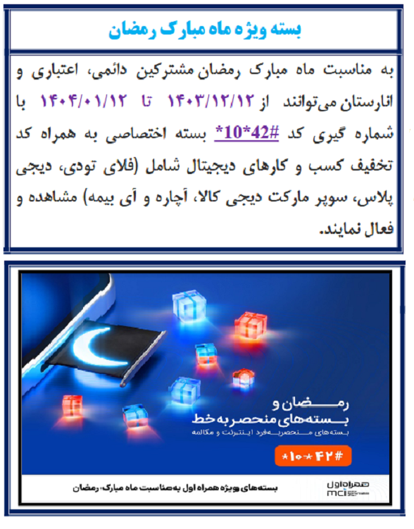 بسته ویژه ماه مبارک رمضان ۱۳ اسفند ۱۴۰۳ | ۰۹:۳۰ کد : ۴۹۹۵۸ اطلاعیه ارسال به دیگران نام شما ایمیل شما ایمیل دریافتکننده ارسال انصراف تعداد بازدید:۶۷۱۶ بسته ویژه ماه مبارک رمضان