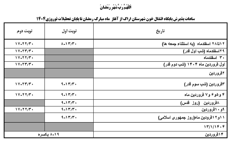 اعلام ساعات پذیرش اهدا کنندگان محترم در پایگاه انتقال خون شهرستان در ماه مبارک رمضان ۲۸ اسفند ۱۴۰۳ | ۱۳:۰۸ کد : ۵۰۲۶۹ اطلاعیه ارسال به دیگران نام شما ایمیل شما ایمیل دریافتکننده ارسال انصراف تعداد بازدید:۷۶۵۵ اعلام ساعات پذیرش اهدا کنندگان محترم در پایگاه انتقال خون شهرستان در ماه مبارک رمضان