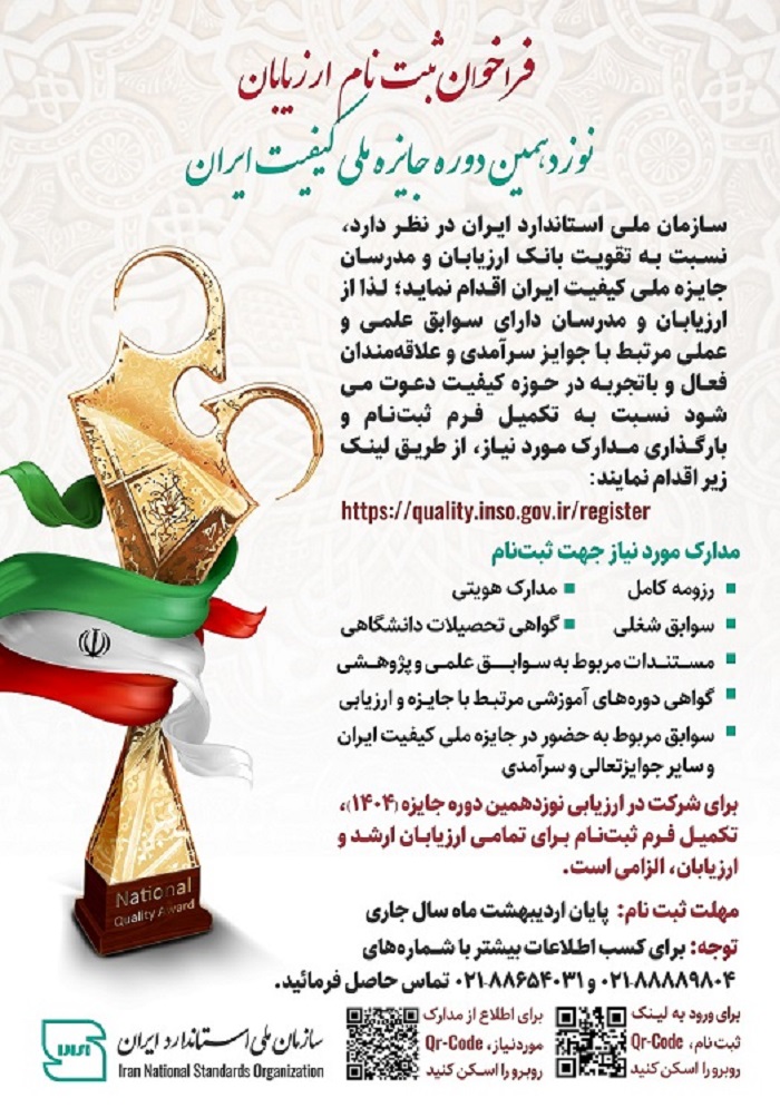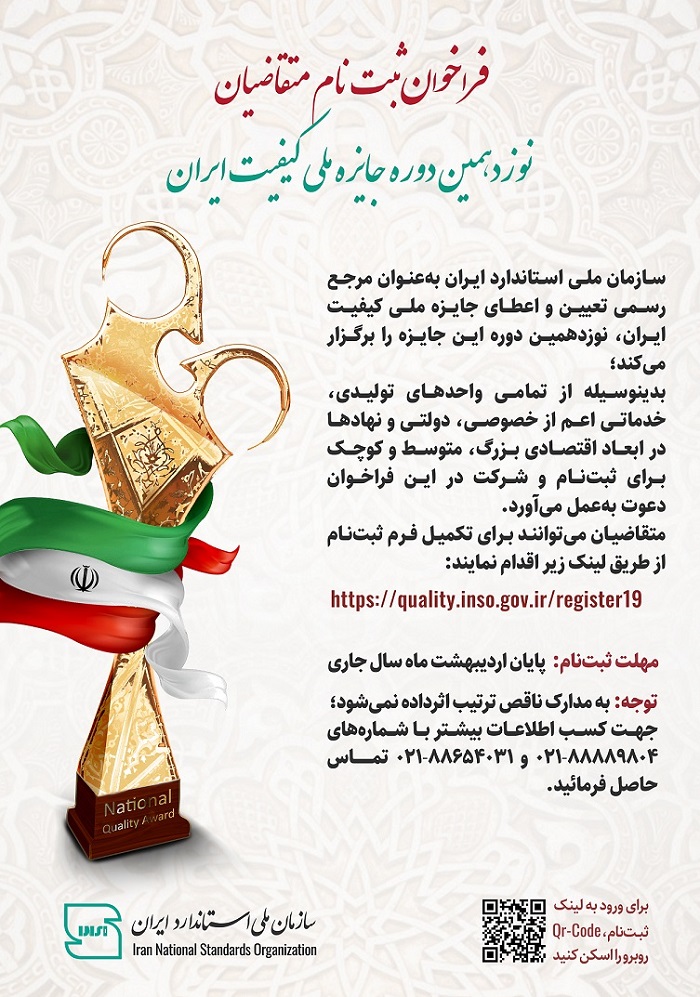 فراخوان شرکت در نوزدهمین دوره جایزه ملی کیفیت ایران