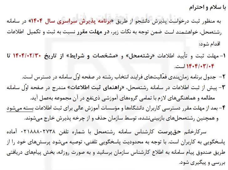 درخواست پذیرش دانشجو از طریق «برنامه پذیرش سراسری سال ۱۴۰۴»