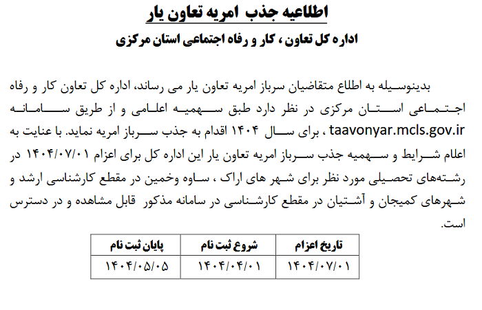 اطلاعیه جذب امریه تعاون یار ۱۱ تیر ۱۴۰۴ | ۱۲:۰۴ کد : ۵۲۷۴۸ اطلاعیه ارسال به دیگران نام شما ایمیل شما ایمیل دریافتکننده ارسال انصراف تعداد بازدید:۱۵۸۳ اطلاعیه جذب امریه تعاون یار