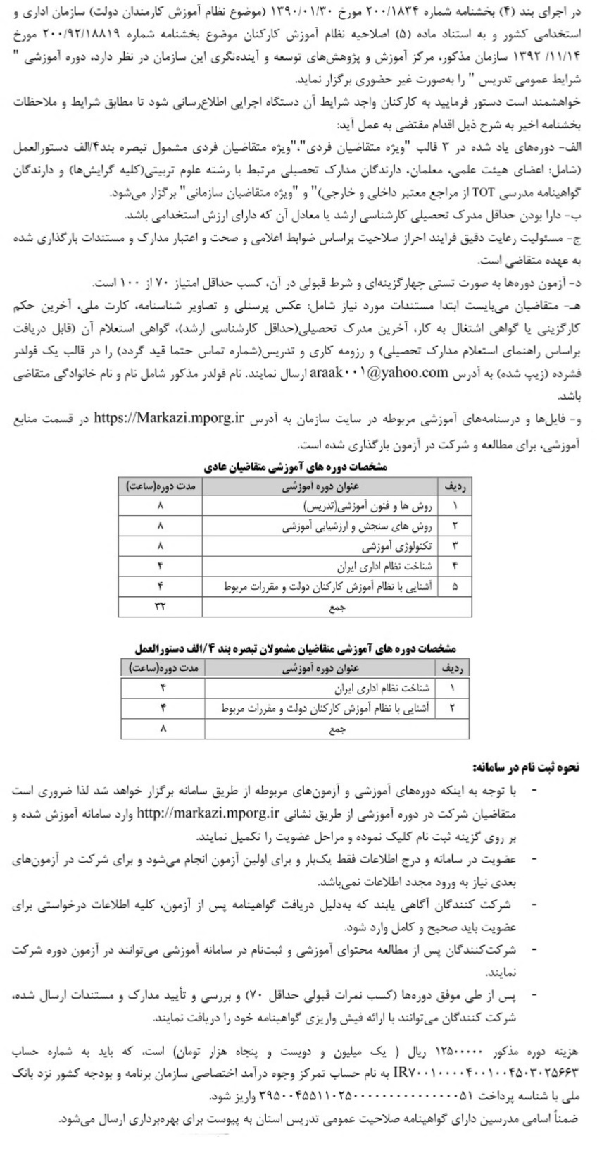 به اطلاع می رساند سازمان مدیریت و برنامه ریزی استان مرکزی، دوره آموزشی "شرایط عمومی تدریس" را برگزار می نماید.