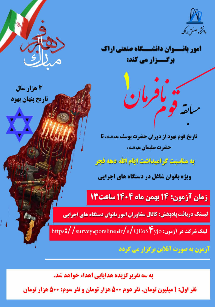 مسابقه قوم نافرمان ۰۸ بهمن ۱۴۰۴ | ۱۰:۳۹ کد : ۵۷۷۴۳ اطلاعیه ارسال به دیگران نام شما ایمیل شما ایمیل دریافتکننده ارسال انصراف تعداد بازدید:۴۷ برگزاری مسابقه قوم نافرمان، در ایام الله دهه فجر